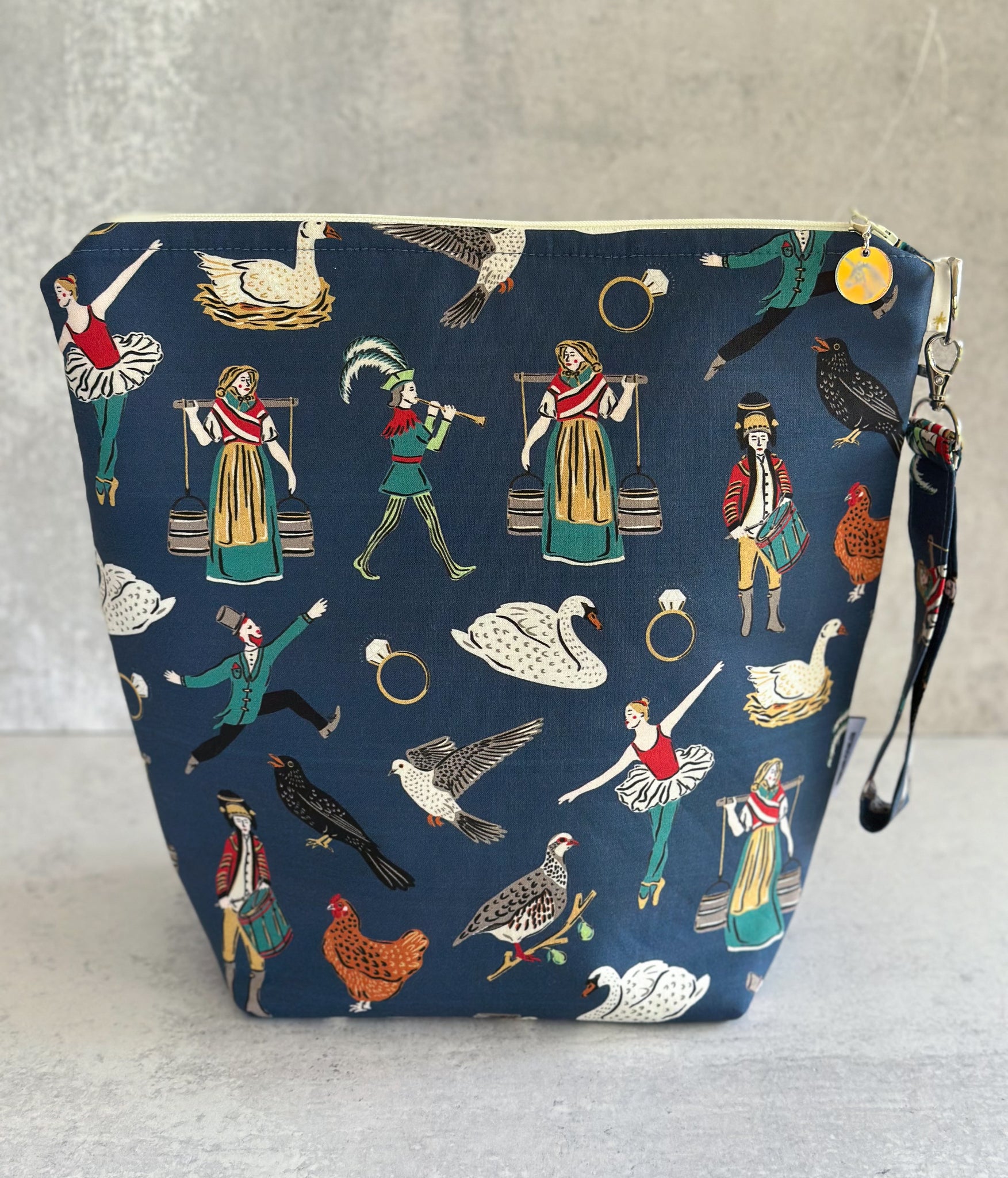 It is not recommended that you carry these bags by the handle for extended periods of time, as larger projects may stress the seams. (The seams are reinforced but I want you to love your bag for a long time!) These are designed to hold knitting projects and yarn, and are not guaranteed when used to hold large or heavy items.