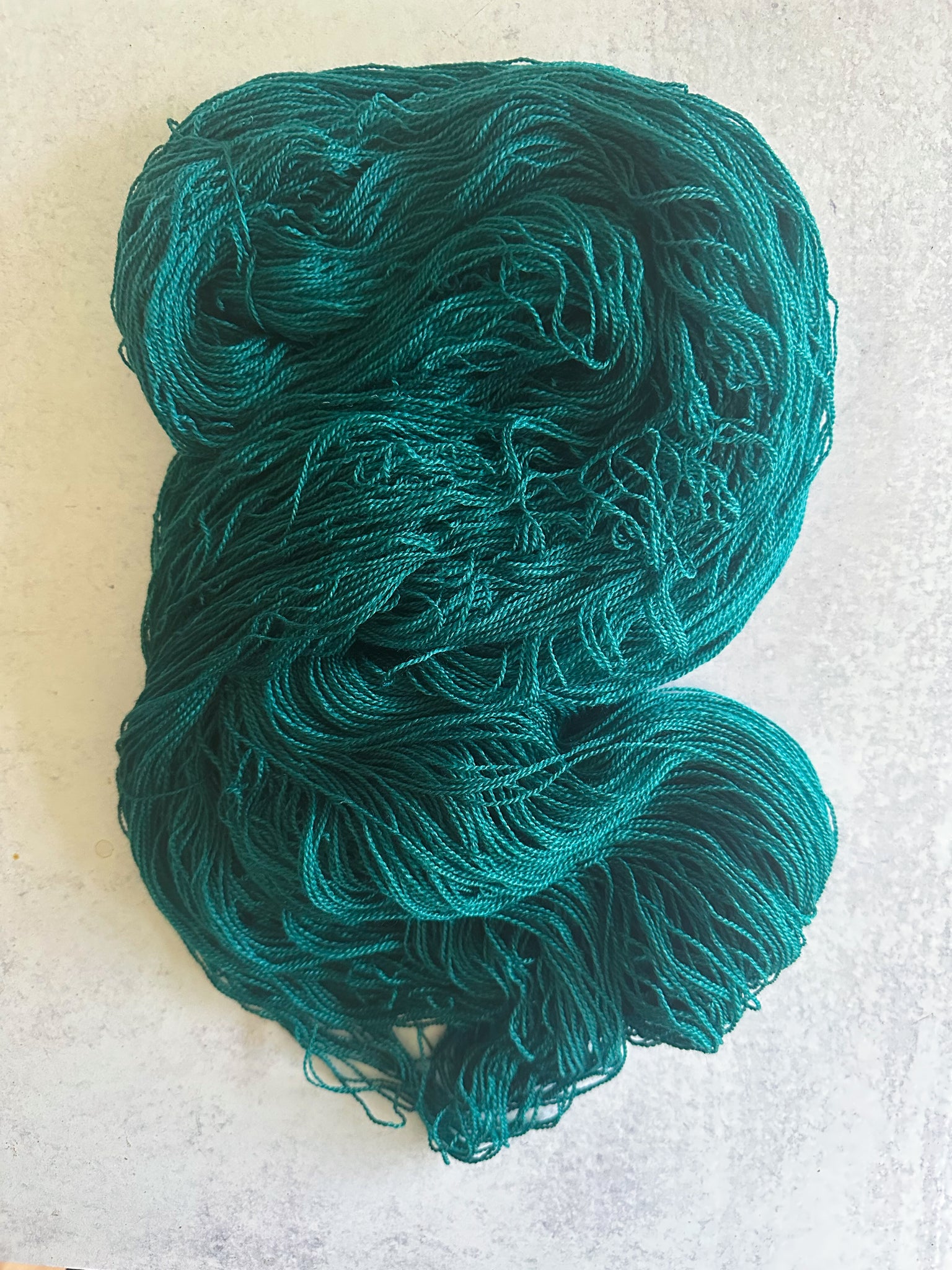 Republica Unicornia's Merino Silk Laceweight base is 80% superwash Merino, 20% Silk, 875 yards/100 grams, 2-ply. It is very fancy.